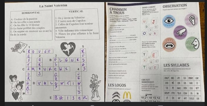Deux exercices sur papierEnsuite en l’honneur de la Saint Valentin, Nicole nous interroge
