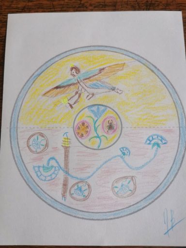 Et enfin, chaque participant-e a reçu une fiche avec sa numérologie et a pu, grâce aux symboles mis à disposition, créer une oeuvre unique sur un tableau, qui reprenait la couleur correspondant à son chemin de vie.